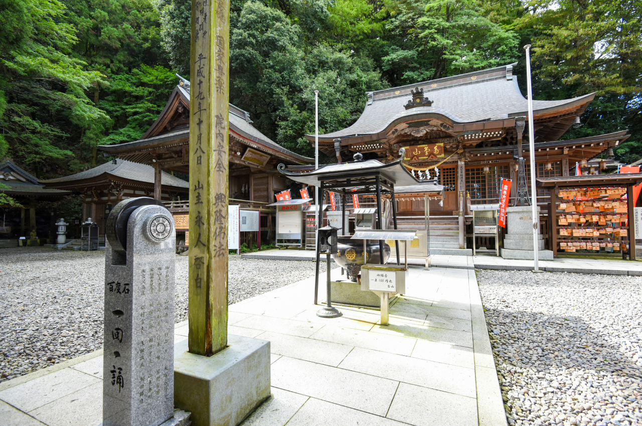 弘仁13(822)年、日光を開山した勝道上人の弟子・尊鎮法師によって創建された、多気山の中腹に位置する歴史の深い真言宗の寺院です。ご本尊は真言密教の主尊である大日如来の化身といわれる不動明王です。