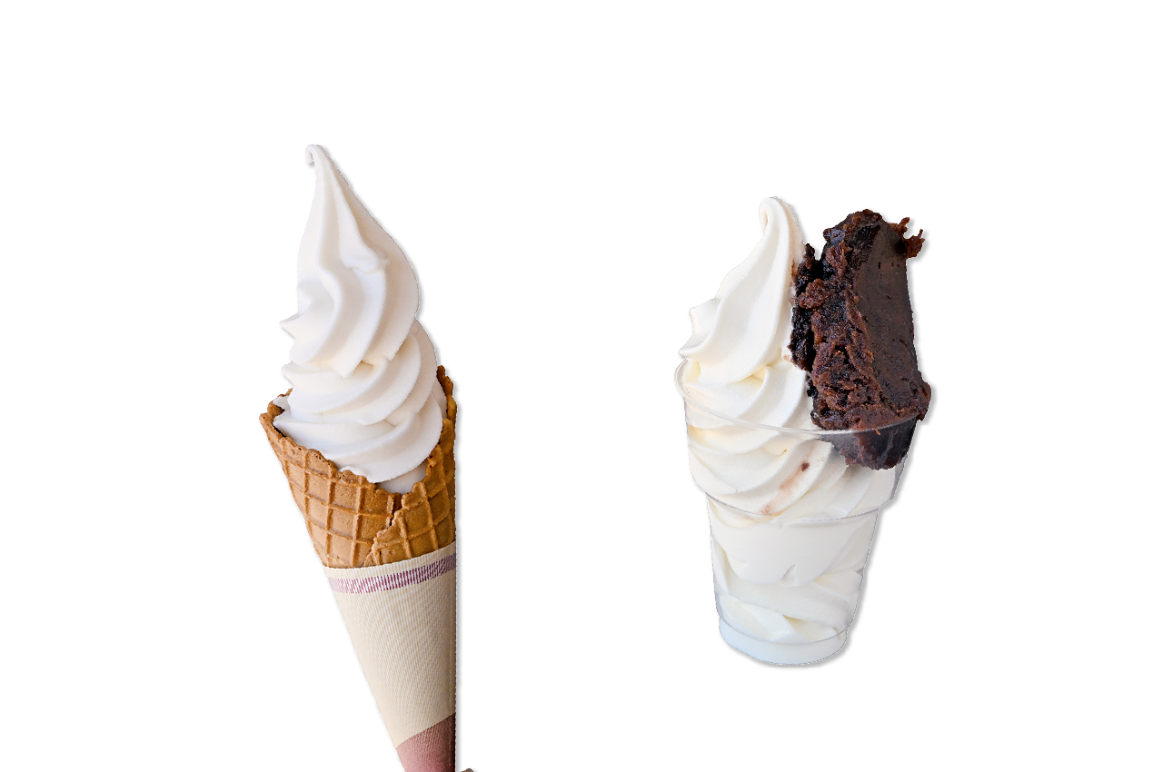 やいたのリンゴ 360円&かあちゃんの手作りあずきソフト460円。