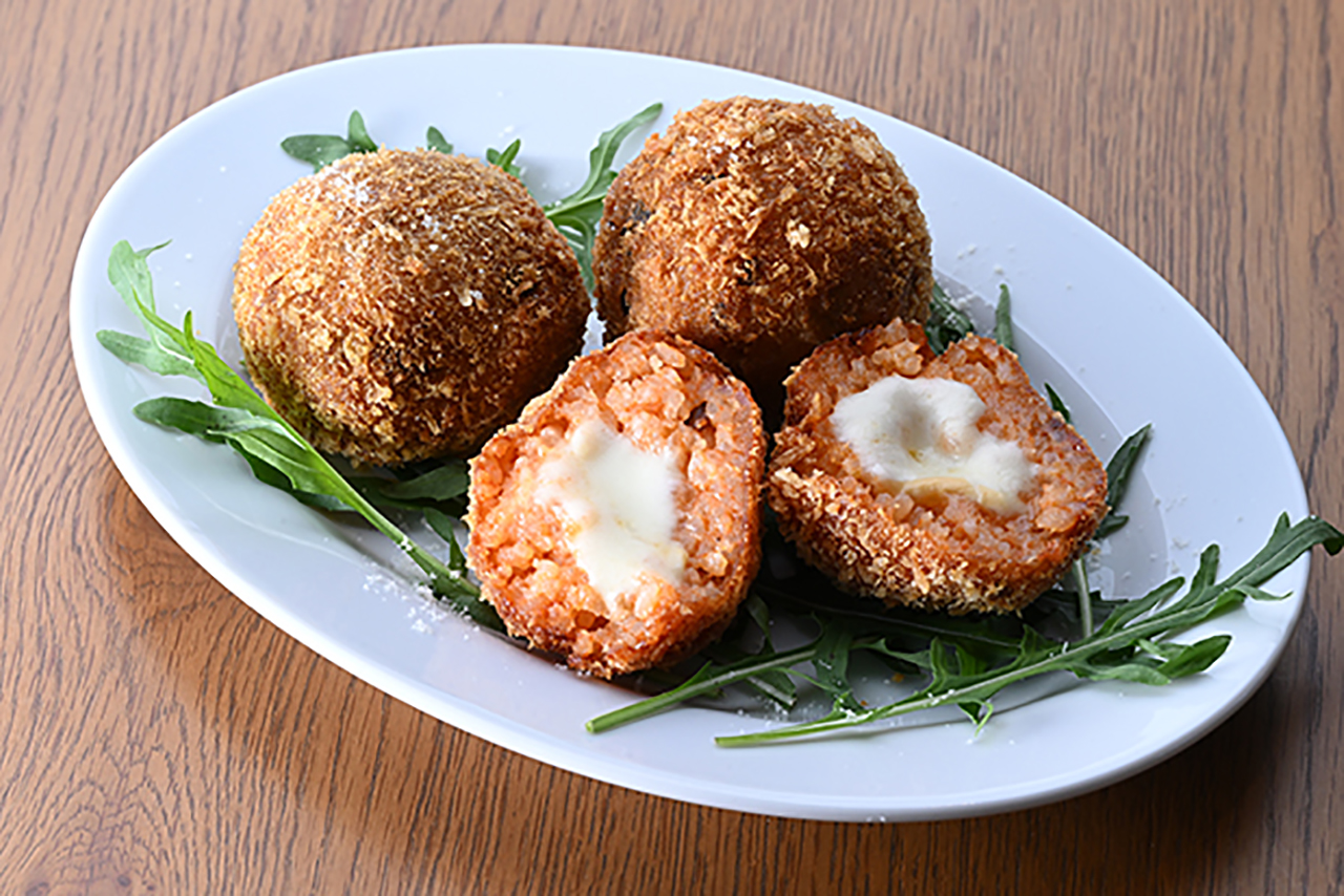 ポモドーロ(トマト味)・フンギ(キノコ味)・キーマカレー味は各440円。高根沢産「とちぎの星」でつくるシチリア、ナポリ名物のライスコロッケ。中からチーズがとろ~りあふれます。