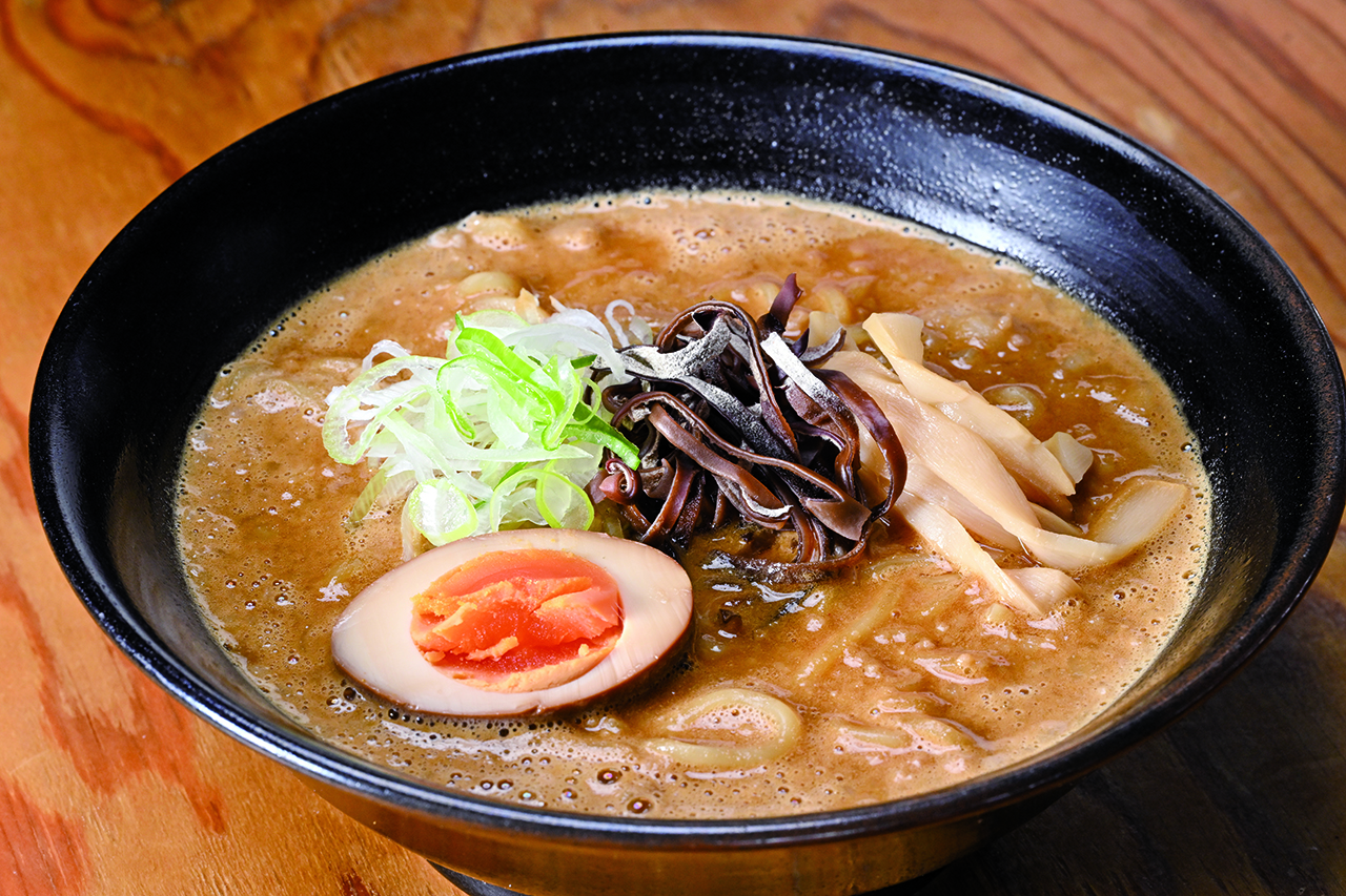 二晩かけて仕込む濃厚豚骨。味噌豚骨スープの底には、旨味たっぷりの炒りひき肉。辛さがアクセントに。よく混ぜて、麺に絡ませて食べましょう。