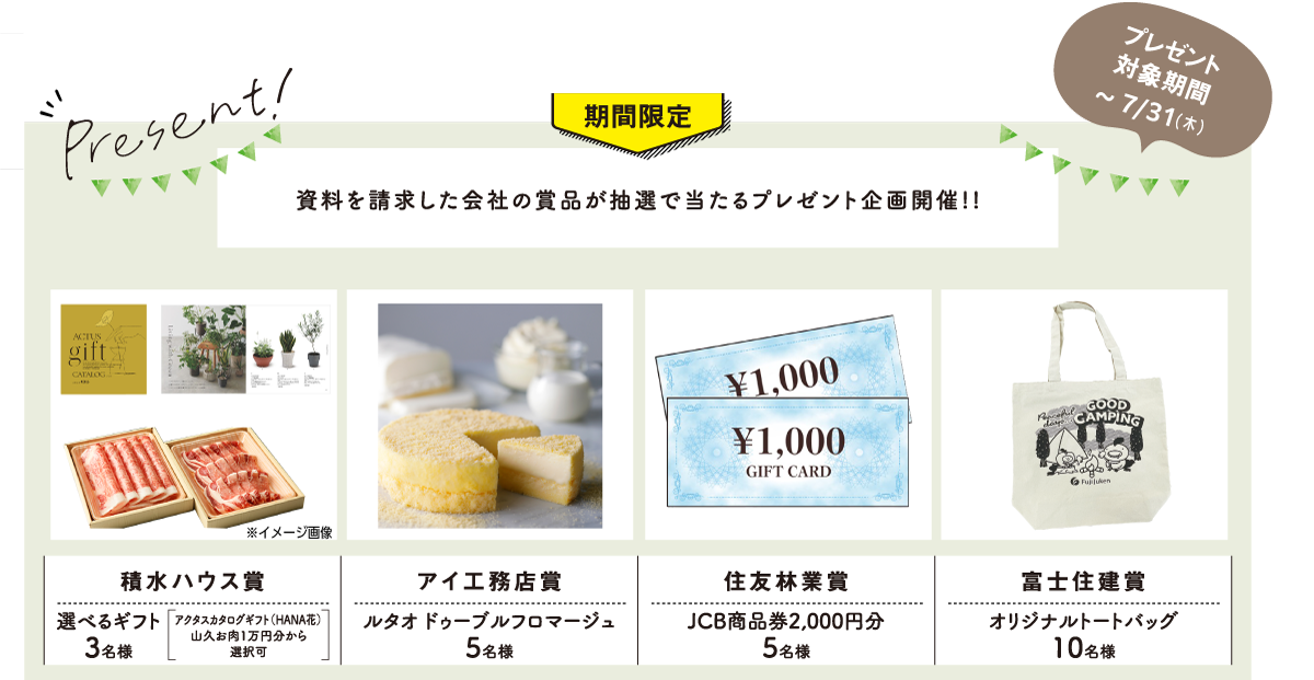 ご入力いただいた個人情報は、資料送付及び賞品発送のみを目的として、資料をご希望された各メーカーに提供いたします。