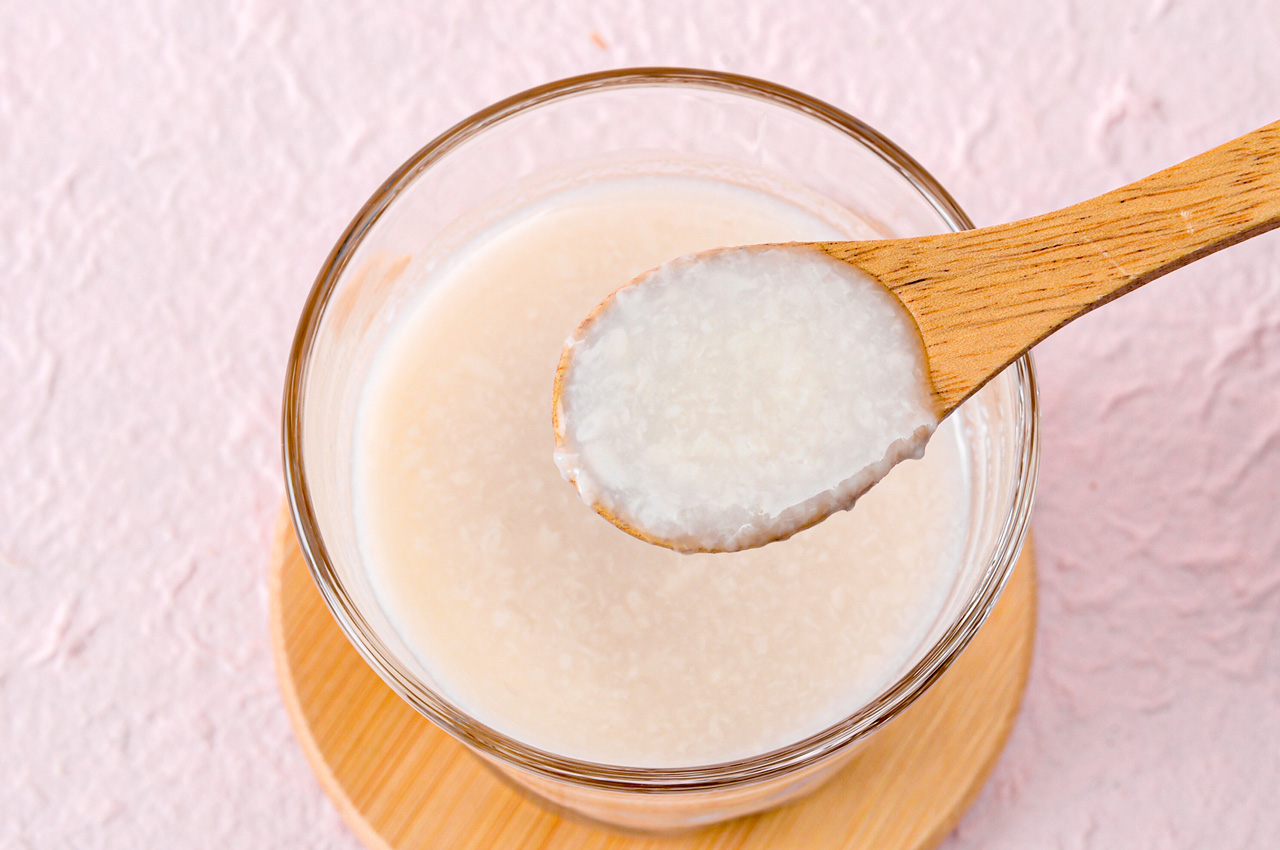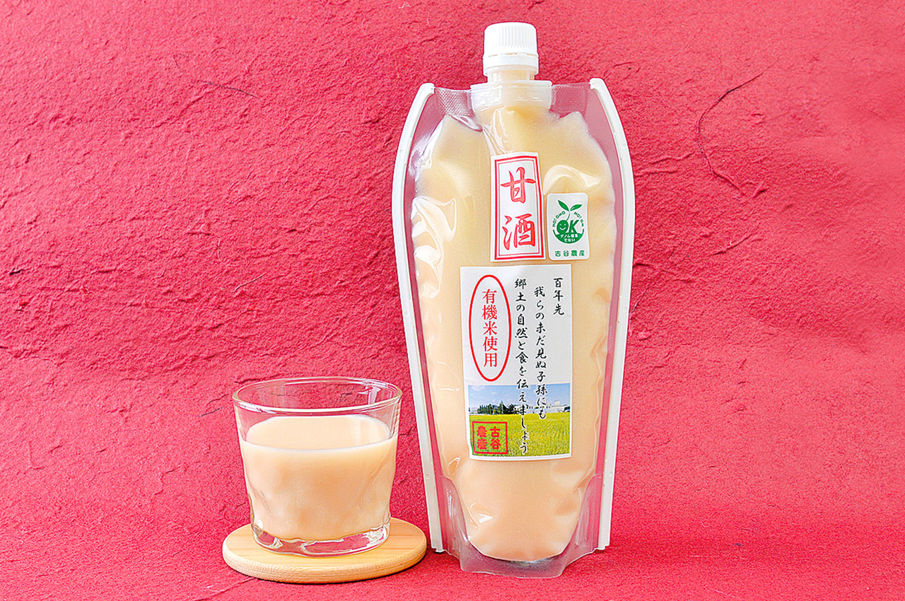 甘酒は、減農薬コシヒカリから最大限に甘味を引き出す製法で作った米糀とお湯で仕込んでいます。生きた酵母菌を含む自然な甘味で飲みやすく、冷凍して常備しておきたい一品。
