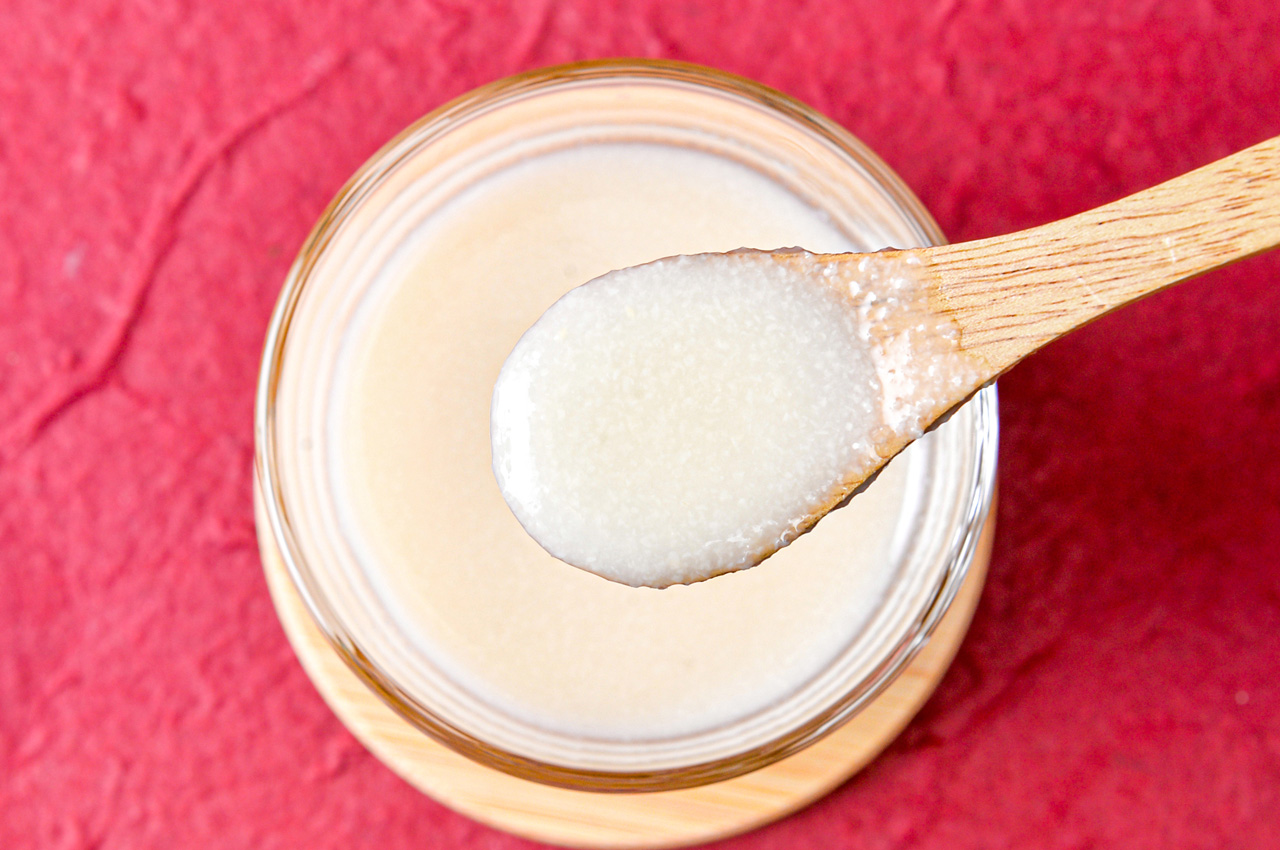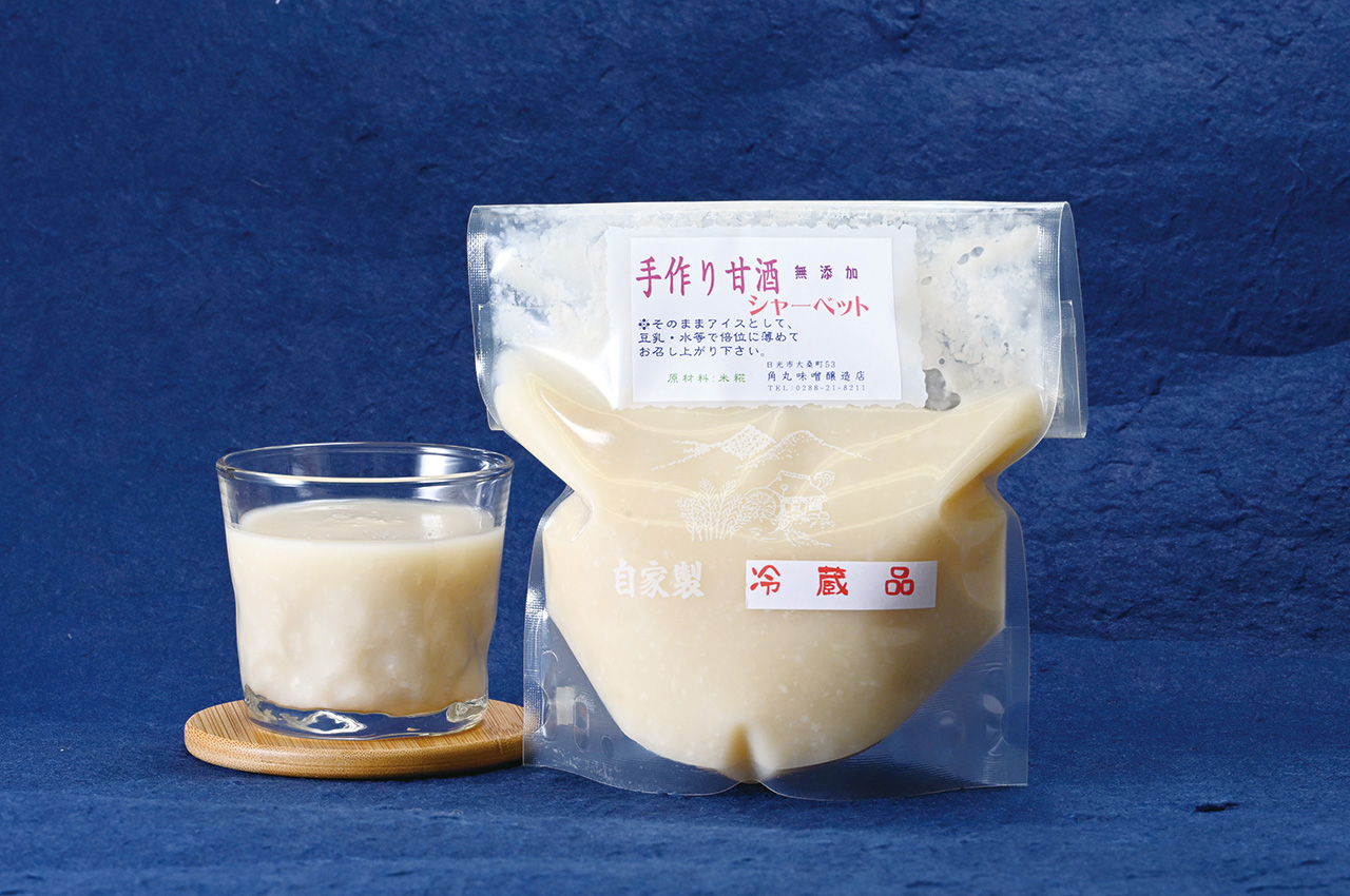 日光産コシヒカリで仕込んだ糀で作ります。おかゆを加えず糀とアルカリ分解したイオン水のみ。さらりとしたテイストで米糀の甘さが際立ちます。