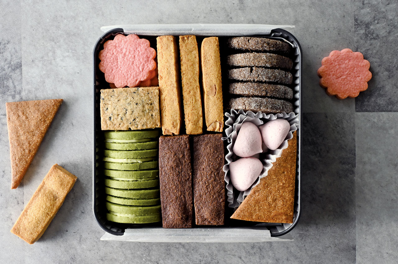 アーモンドたっぷりザクッと香ばしいフロランタン、チョコチップ、ごま、スノーボール(プレーン/抹茶)、ロゴクッキー、アメリカンチョコチップ、ピスタチオをたっぷり混ぜ込んで焼き上げたリッチなピスタチオの全8種。菓子工房S.なかやまの、シンプルながら味わい深い逸品をセレクトしました。