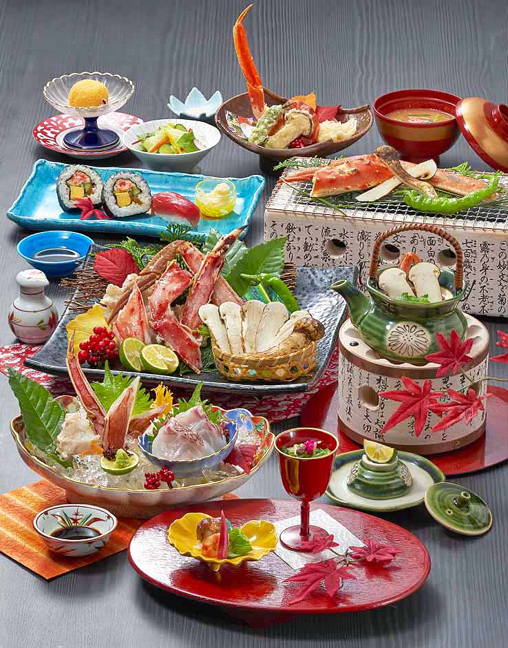 「かにと松茸の炭火焼会席 錦木(にしきぎ)」