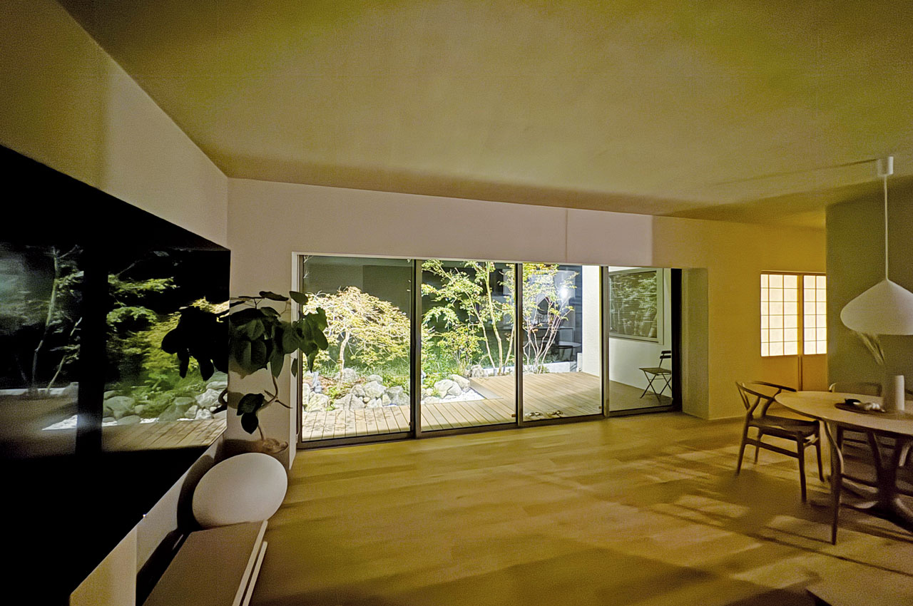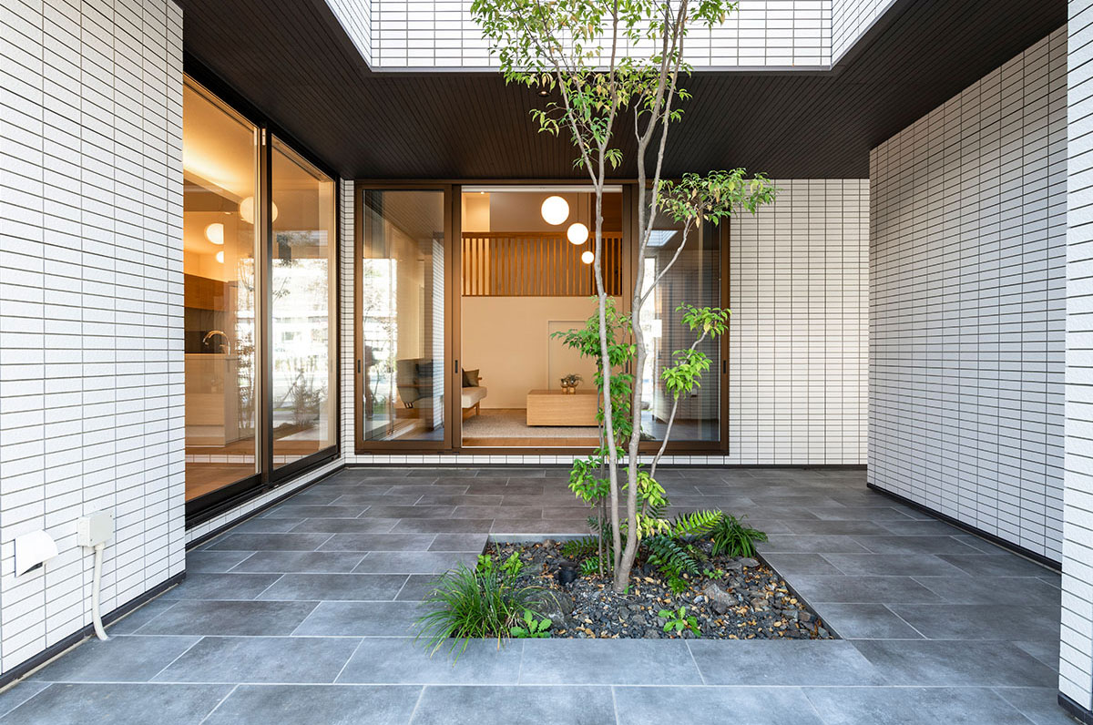 リビングとつながる開放的な空間に植栽を取り入れ、四季折々の自然を感じる中庭。