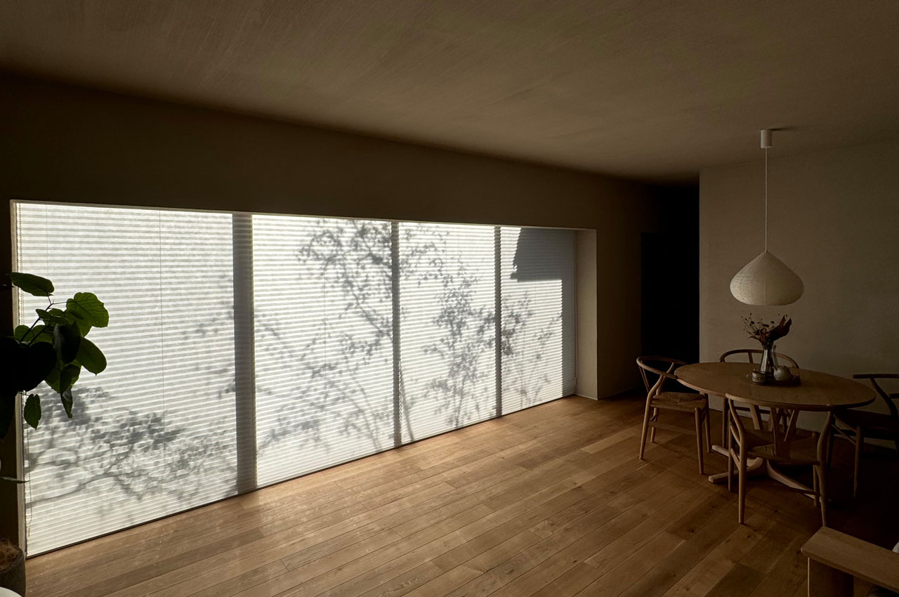 穏やかな朝日が差し込み、樹影を映します。季節を感じるひと時が楽しめます。