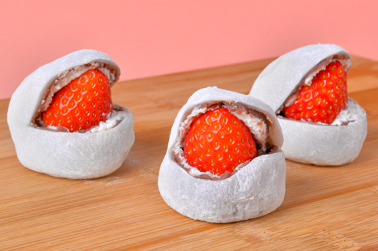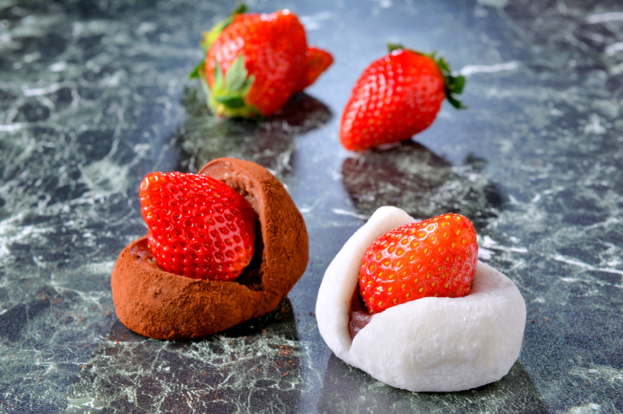 完熟とちおとめを包み込む わみやの「生クリーム大福」