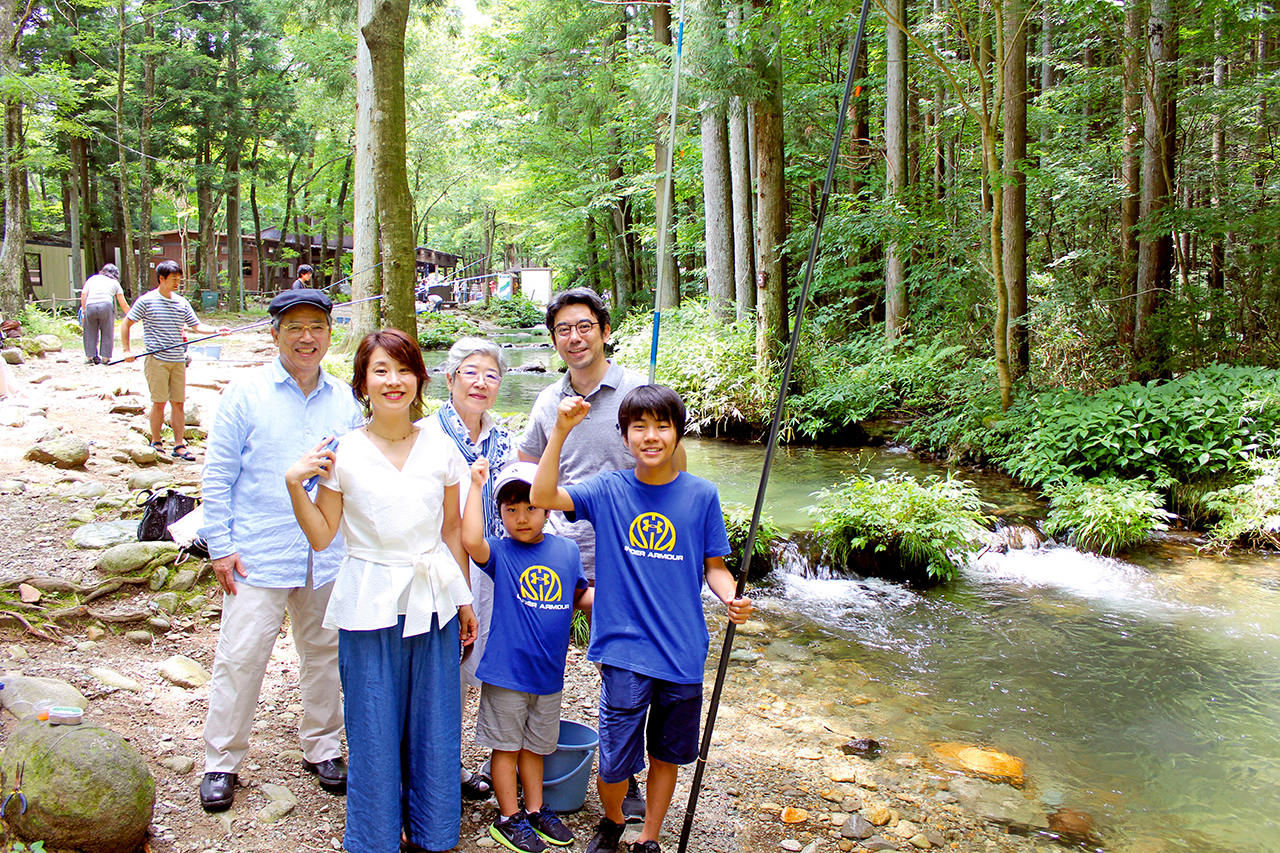 敷地内を那珂川源流域の支流が流れ、自然いっぱいの中で本格的な渓流釣りを楽しめます。なんと、制限時間内釣り放題! 魚の買取制度がないのもうれしいですね。釣れた魚は、その場で塩焼きにして食べられます。ほかにお肉や野菜のBBQセット(1人前1,500円~、2人以上で注文)も楽しめます。たくさん遊んだら、併設されている温泉「源泉ほたるの湯」も格安で利用できますよ。こちらは旅館なので、宿泊もできます。