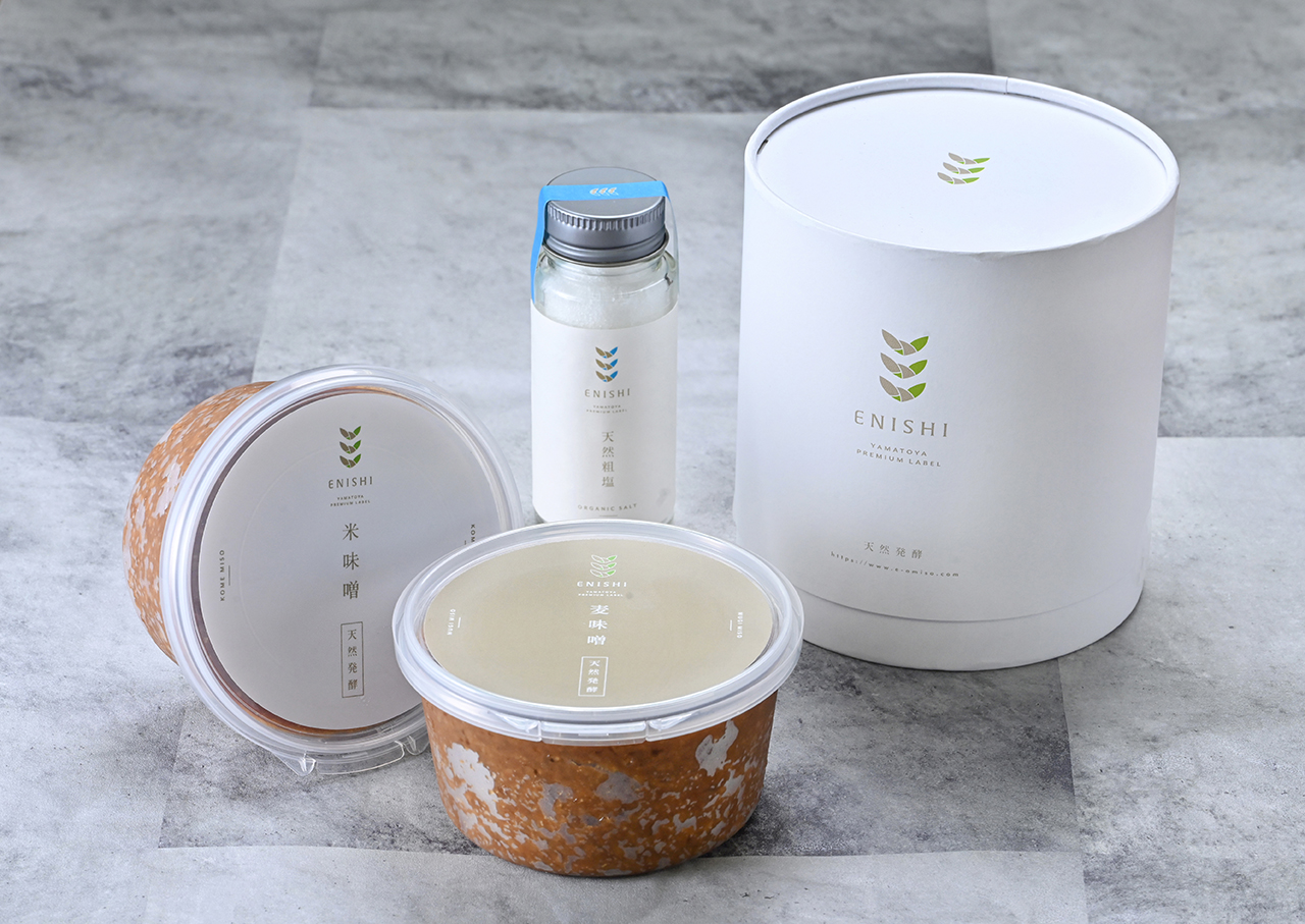 贈答用 ENISHI(縁)みそ2種&天然塩セット 2,100円