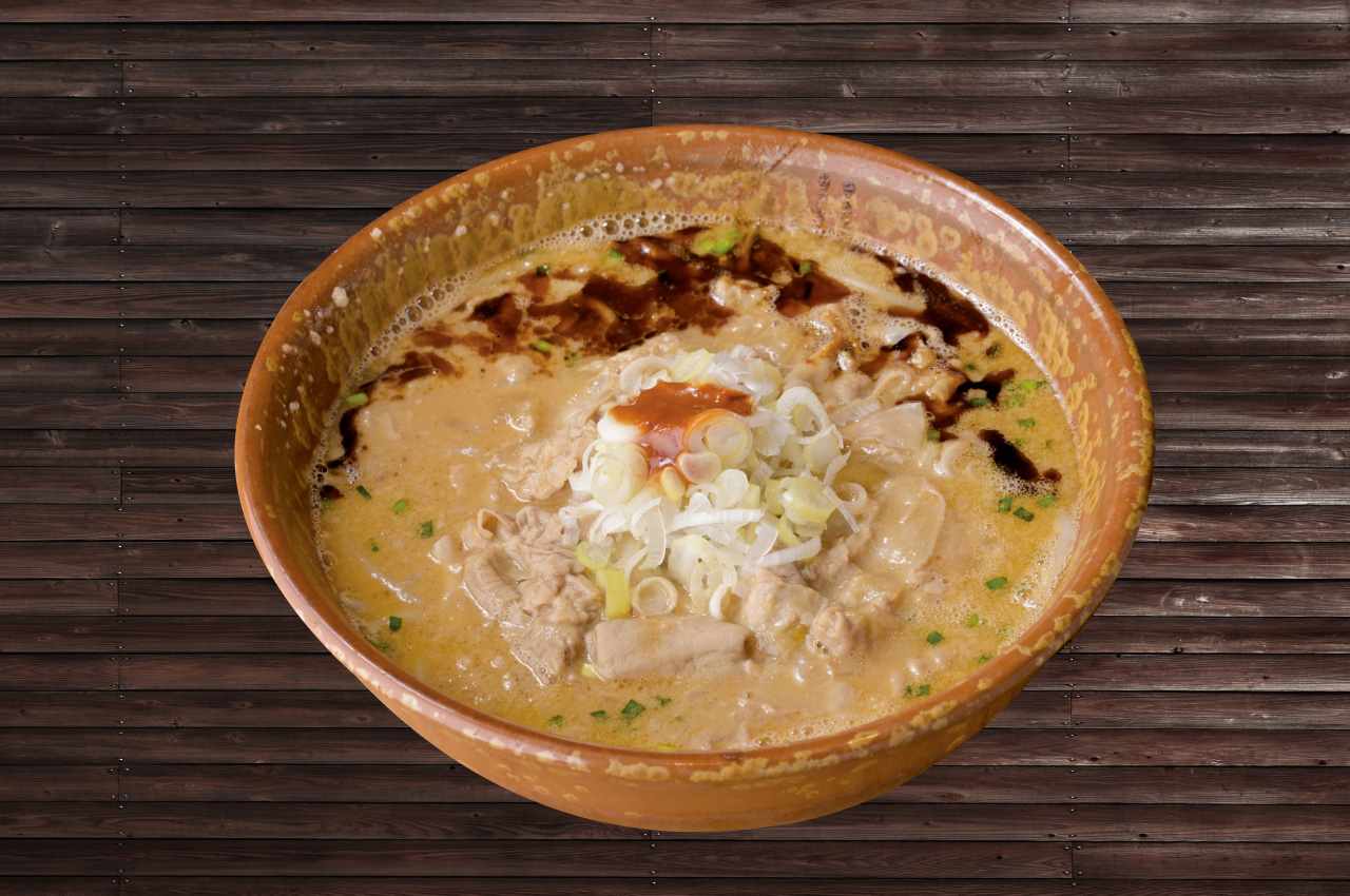 野州吟醸味噌を満天家専用樽で熟成させた、十四割米麹味噌がベースの絶品味噌ダレを使用。豚と鶏のWスープと合わせ、濃厚かつゴマの風味豊かな味わいに。山椒とラー油のシビ辛がたまらない、さらにおいしくなった一杯です。