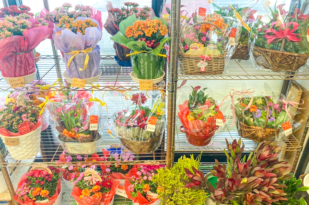 ミニブーケや寄せ鉢のバリエーションも豊富。