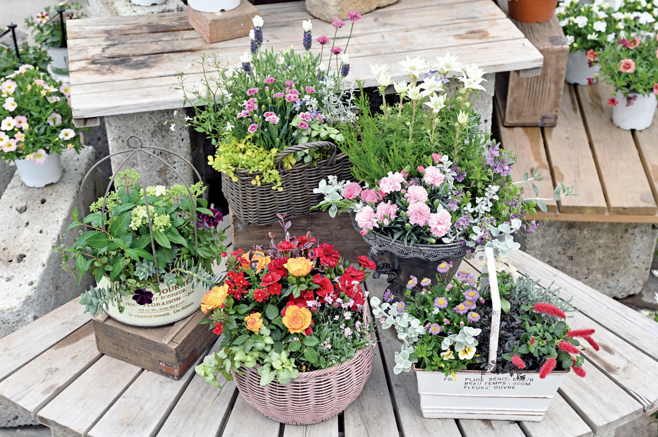 アレンジ、寄せ植え、寄せ鉢など充実の品ぞろえ