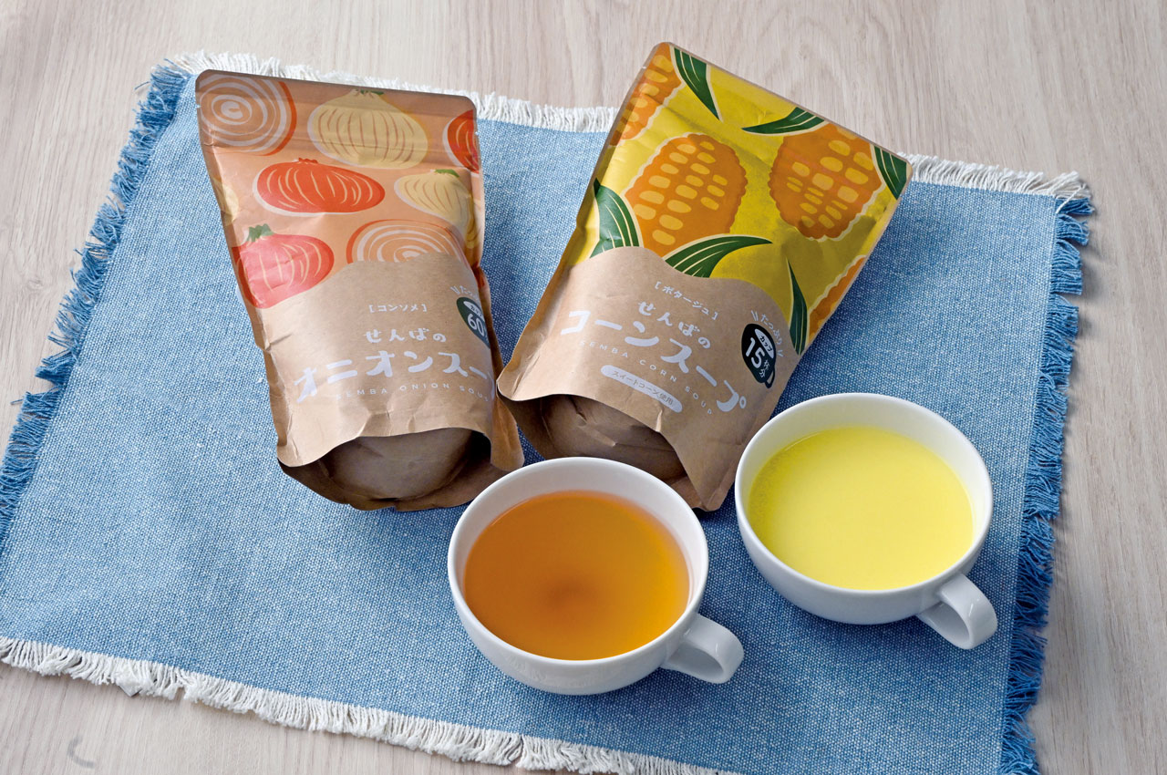 新パッケージのコーンスープとオニオンスープ