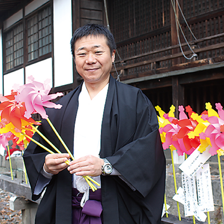 御神体は霊峰日光連山と深い関係にあり、日光開山の祖 勝道上人が創祀した杉並木の沿道に佇む古社。主祭神は、田心姫命(タゴリヒメノミコト)、大黒様、恵比寿様。四季の風に乗った神様の力を風車で受け止めて、運力を高める。