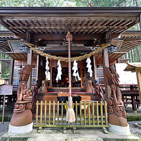 標高700mの広大な土地にあり、神社手前約6㎞の場所に高さ24mの“一の大鳥居”がある。火防の神として信仰されている日本武尊(ヤマトタケルノミコト)を祀り、家内安全・商売繁盛・交通安全・当病平癒・身体健全などの、すべての開運・除災・心願成就にご利益があるとされている。また、日光を開いた勝道上人の修行の場でもあったことから、多くの修験者が修行に訪れた。別名「天狗の社」とも呼ばれ、神社内参籠室や廊下には所せましと天狗の面などが掲げられている。天狗姿でつく正月用の餅つきも話題。