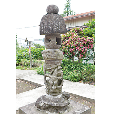 青龍・白虎・朱雀・玄武が彫られた珍しい灯籠。