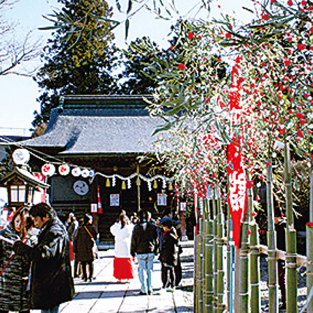 平安時代の1060年に創建。本殿は流れ造りで、さくら市では最古の建造物。厄除け・縁結び・安産・子授けにご利益がある。境内にはより力強いご利益がいただけるよう、干支の神様を詣でる十二支社が祀られている。自分の干支の神様に、今年初の願かけをしてみよう。