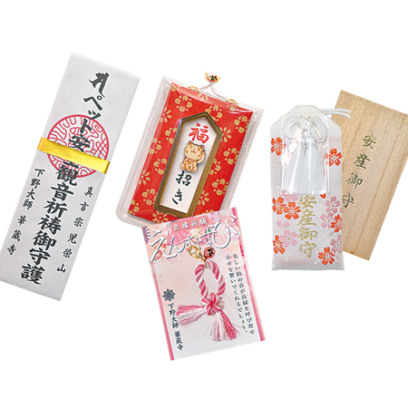 境内には、良縁・子宝・夫婦円満・商売繁盛にご利益のある「聖天堂」、身体健全・当病平癒・目の病にご利益のある「薬師堂」をはじめ、願いを授ける「お授け石」や願い事の叶う、叶わないが分かる「おもかる石」、さまざまなご利益をいただける「なで大黒さん」など、パワースポット満載。