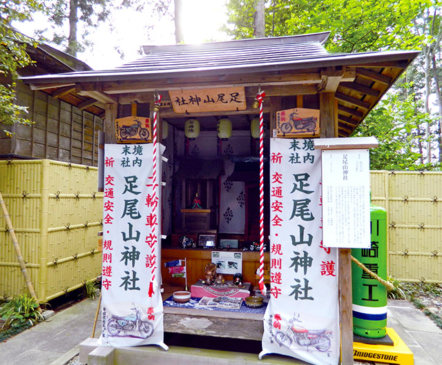 足尾山神社は、ライダーからバイク神社と称され親しまれている末社です。また、縁起物として鳳凰守や幸運守、熊手があり、この三種で開運相乗ができます。