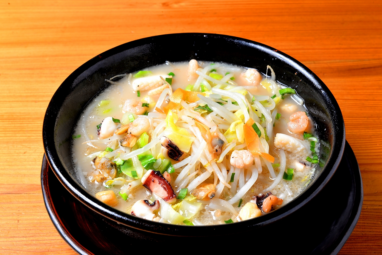 豚骨と白湯が1:1のスープに、特製塩ダレをプラス。そこにイカ、小エビ、ホタテなどの海鮮とキャベツやもやしといったタンメンの定番野菜がイン! 深みのあるスープに野菜の甘さが加わり、思わずほほえんでしまうやさしい味わい。麺は太麺か細麺が選べます。「またあれを食べに行きたいなぁ」と定期的に思い出してやってくる、リピーター多し!