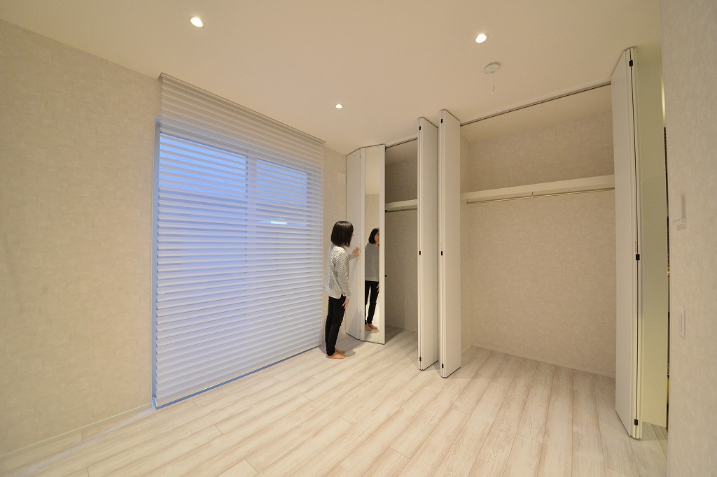 白を基調としたお部屋。姿見付きクローゼットは重宝しそうですね。
