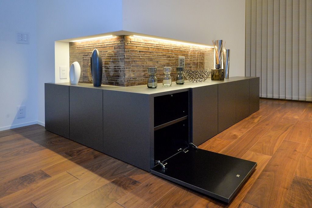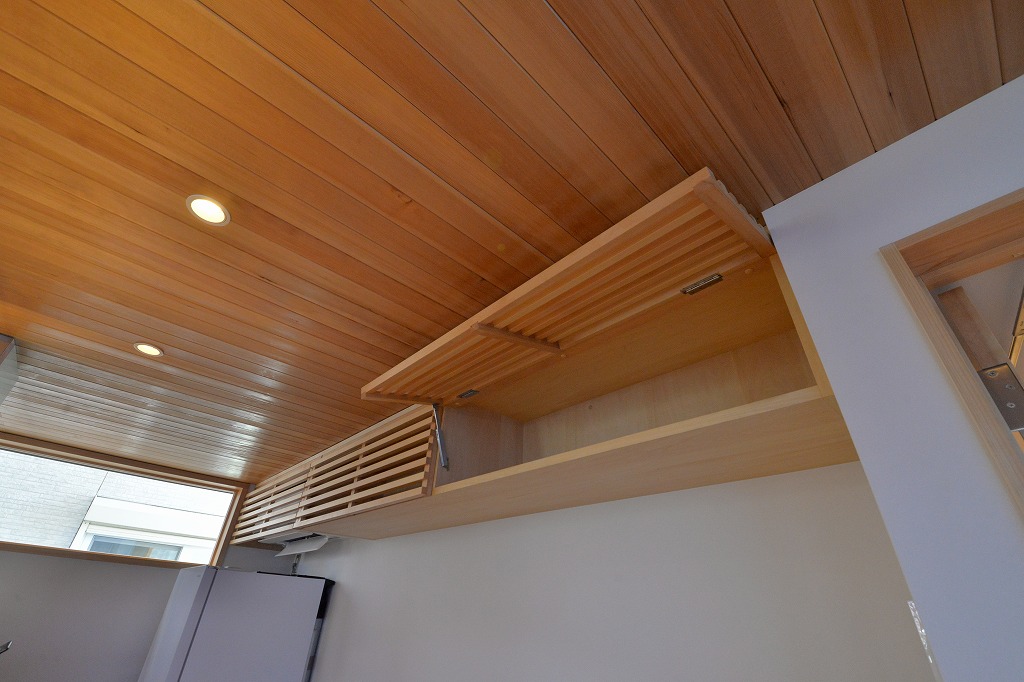 格子を開けると収納スペース! ここにも木を感じられる工夫がありました♪