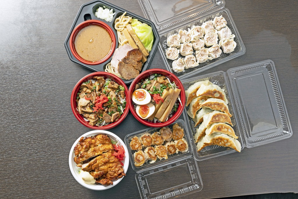 つけ麺や丼ものなどをはじめ、餃子やしゅうまいなどのサイドメニューも豊富です。つけ麺は醤油と味噌のほかに、海老つけ麺や甘くないぜつけ麺もあります。餃子としゅうまいは冷凍品もあるので、自宅のストックにいかがですか? 注文は電話予約がおすすめです。