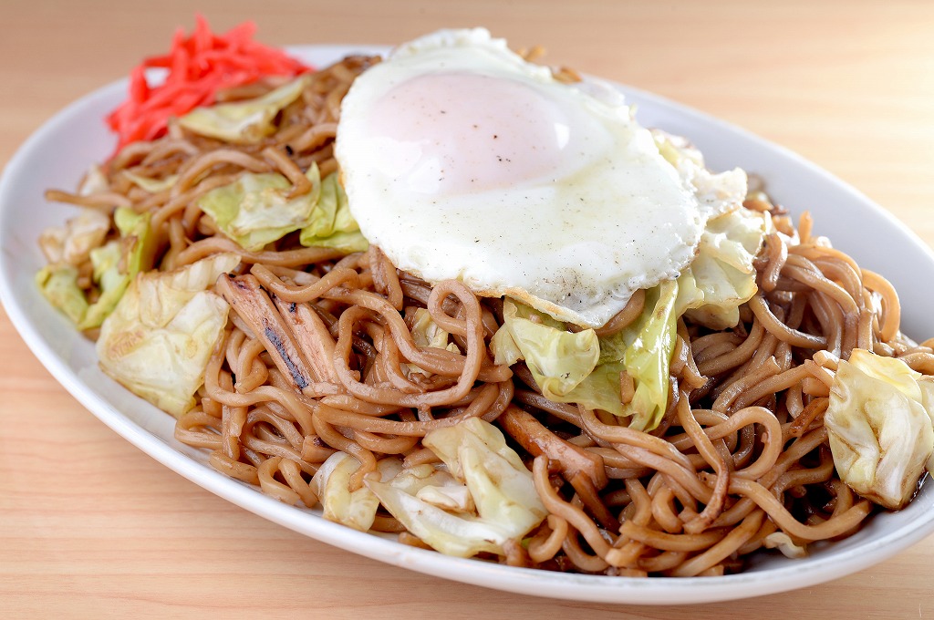 多くの人に愛され親しまれた焼きそばの名店「おかめや」伝統の味を継承しています。シンプルなおいしさがやみつきになる、売切れ必至の蒸し焼きそばです。
