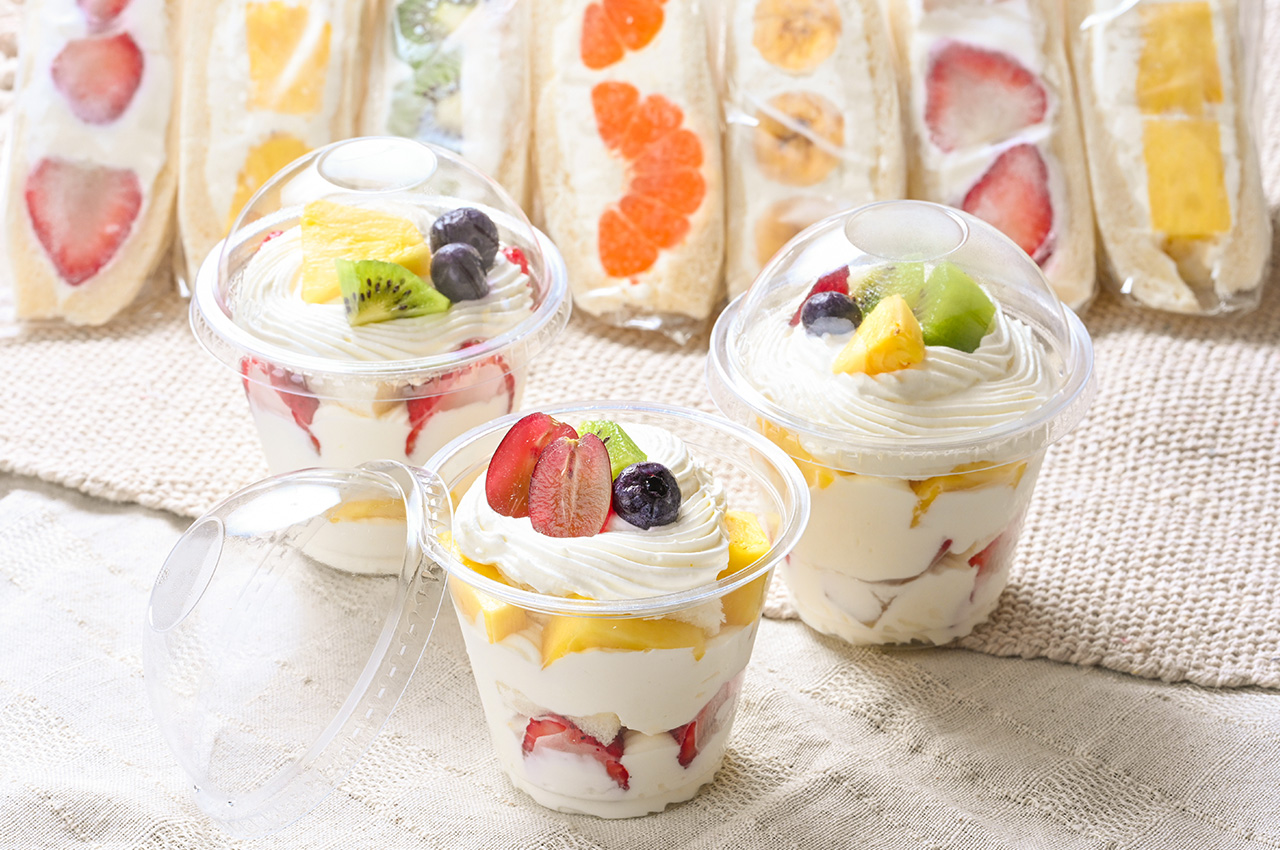 (手前)カップDEフルーツサンド400円/(奥)フルーツサンド500円~
