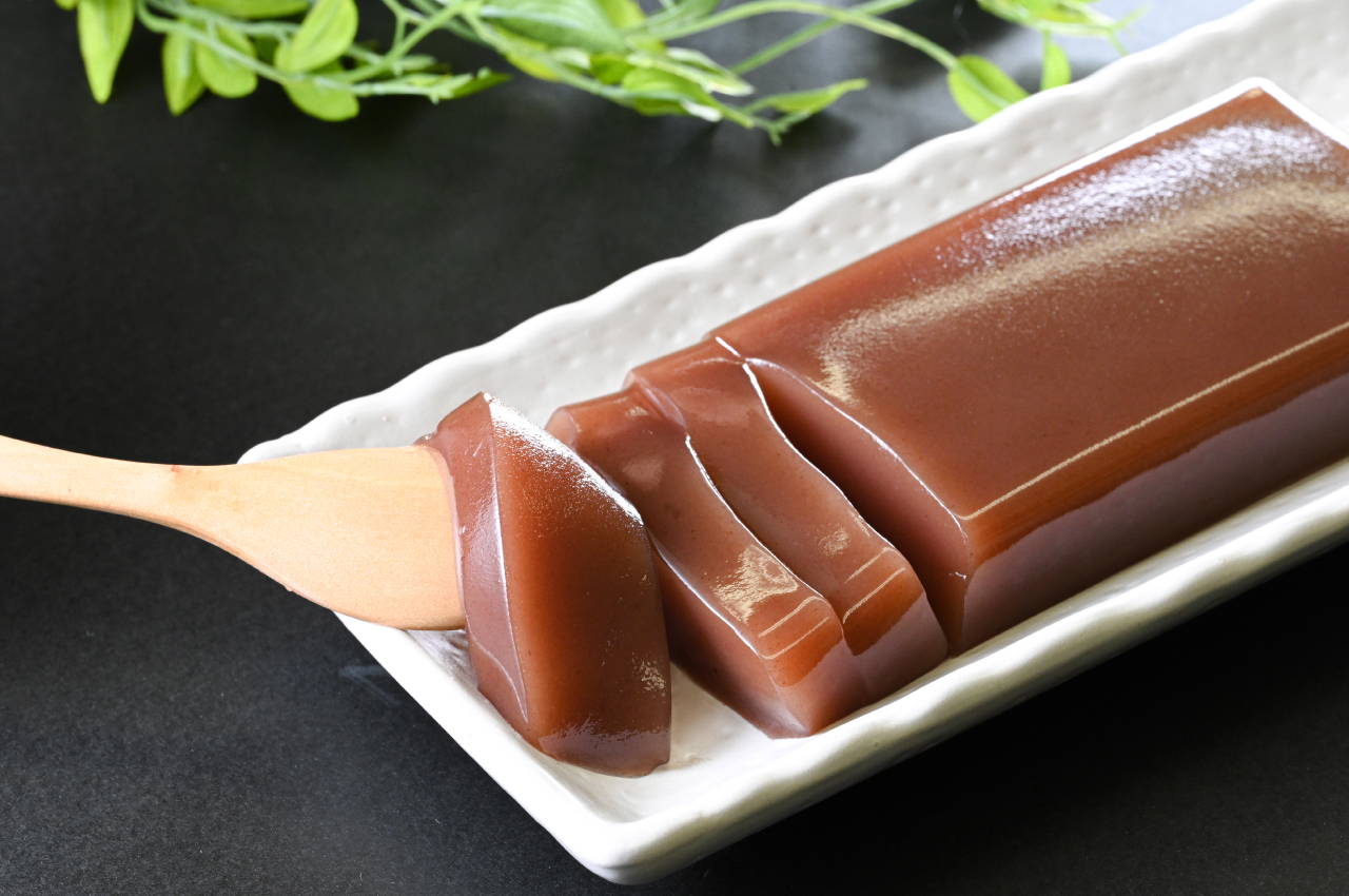 葛特有の弾力と、とろりと独特な食感で喉ごしなめらか。北海道産小豆と葛粉を日光伏流水で仕上げた葛羊羹は、また食べたくなるおいしさです。小豆本来の優しい甘さでさっぱりと食べられます。冷蔵庫で冷やしてつるんとおいしくいただきましょう。バニラアイスを添えるとなお良き♪