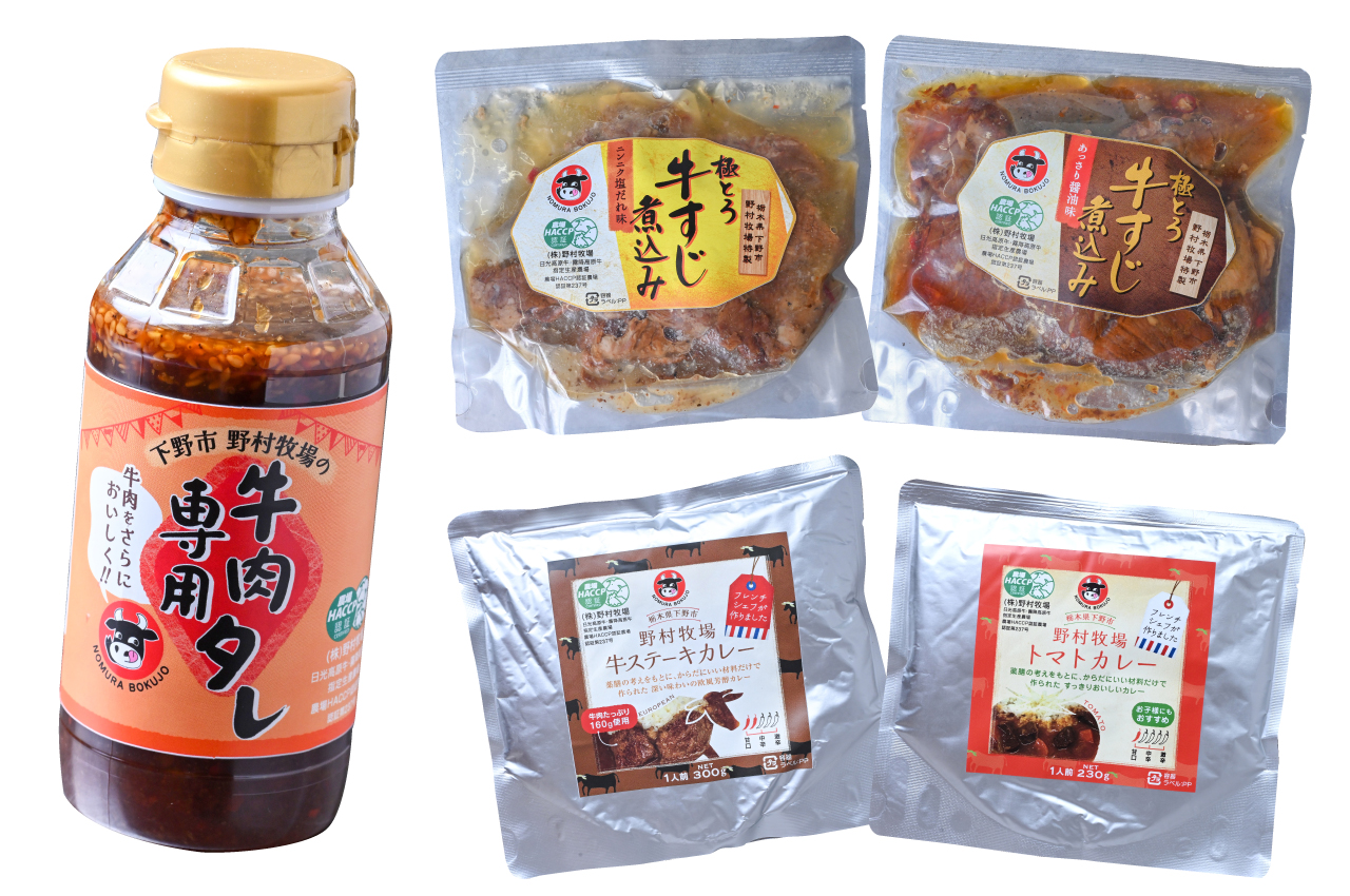 牛肉をさらにおいしく食べられるタレは人気フレンチ「アンリロ」上村シェフ監修! レトルト商品も手土産に最適です。この他、野村牧場の牛肉の旨味をギュッととじ込めたコロッケも人気です。