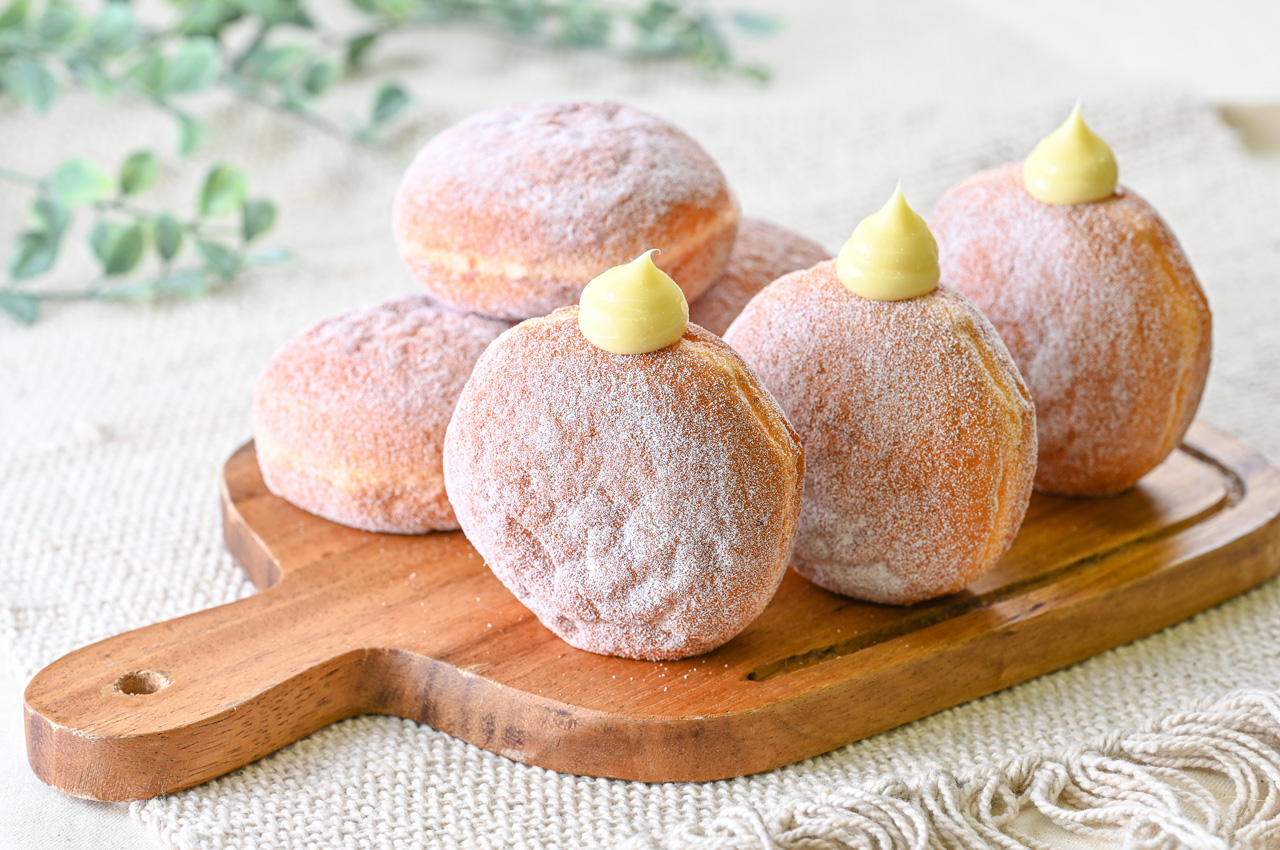 今人気を集める生ドーナッツ。ふわモチ生地を楽しむ「シュガー」と、甘さ控えめなクリームを味わう「カスタード」の2種+期間限定フレーバーも登場予定です。ひんやりながらふわ、もち、しっとり。この新食感は、壬生の新名物になること間違いナシ! 手土産の新定番に加えてください。