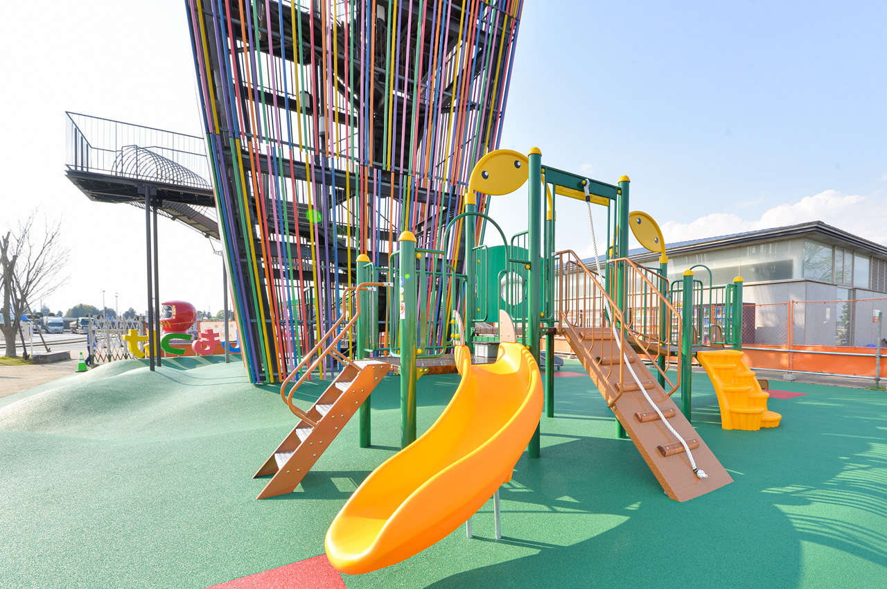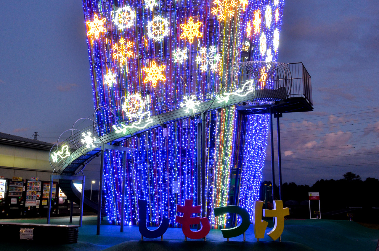 この時期は、遊具を兼ねた展望台がイルミネーションに彩られ、昼間とは違った雰囲気に。イルミネーションの内側を見ながら階段を上り、イルミネーションを横に見ながら滑り降りるのも楽しそう♪