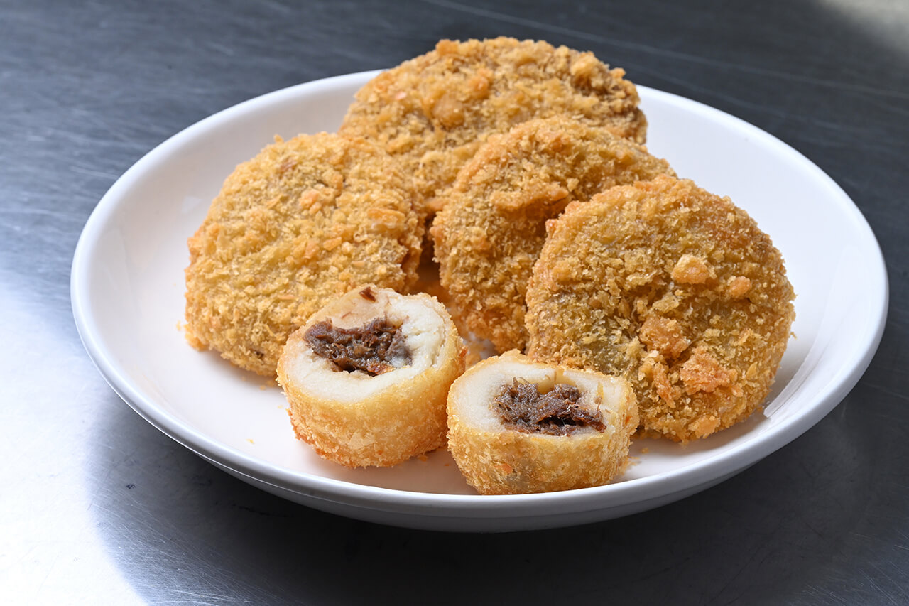 すべて店内で手作り、肉の旨味がギュッとつまったコロッケ。牛肉コロッケ、マイルドカレーコロッケ、旨塩メンチなどなど。注文が入ってから揚げてもらえるのでいつでもアツアツです。閉店30分前まで注文OK。電話予約も可。