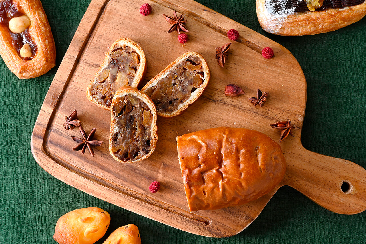 洋梨やいちじく、たっぷりのドライフルーツとナッツに、シナモンやナツメグなど数種のスパイスを効かせた大人スイーツ「ベラベッカ」。フランスのアルザス地方の「ベラベッカ」は包焼き風。予約は2023年12月14日(木)まで。24日(日)までは当日販売分もあります。
