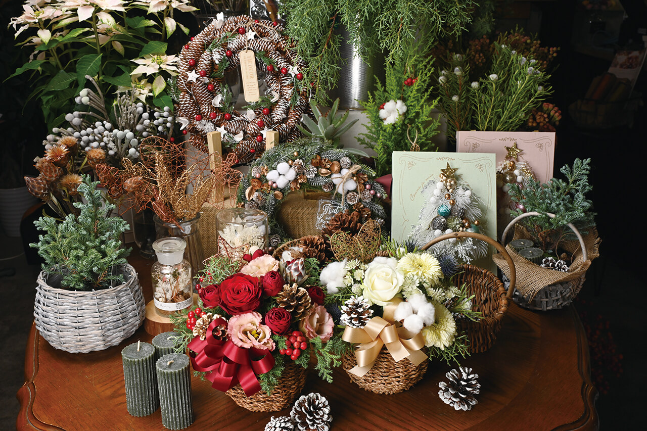クリスマスはもちろん、日常に花を取り入れたくなるディスプレイに惚れ惚れ。