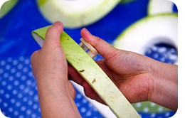 今は機械でひゅるひゅる~っとむいちゃう。かんぴょうが、まるで生きもののように宙を舞う。職人技に拍手喝采。かっこいい!