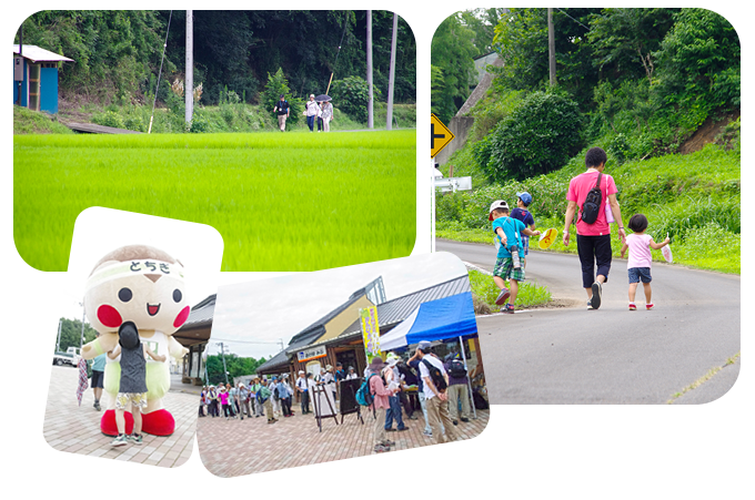 今回は、歴史とロマンのかんぴょう街道エリア。道の駅みぶから出発。両側を丘に挟まれた、川沿いの田んぼ道をウォーキング。緑のじゅうたんを眺めながら、のんびり散策♪