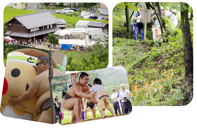 立ち寄りポイントとなっていた名草ふるさと交流館では、大相撲陸奥部屋の力士と交流できる「力士ふれあいフェスタ」も。